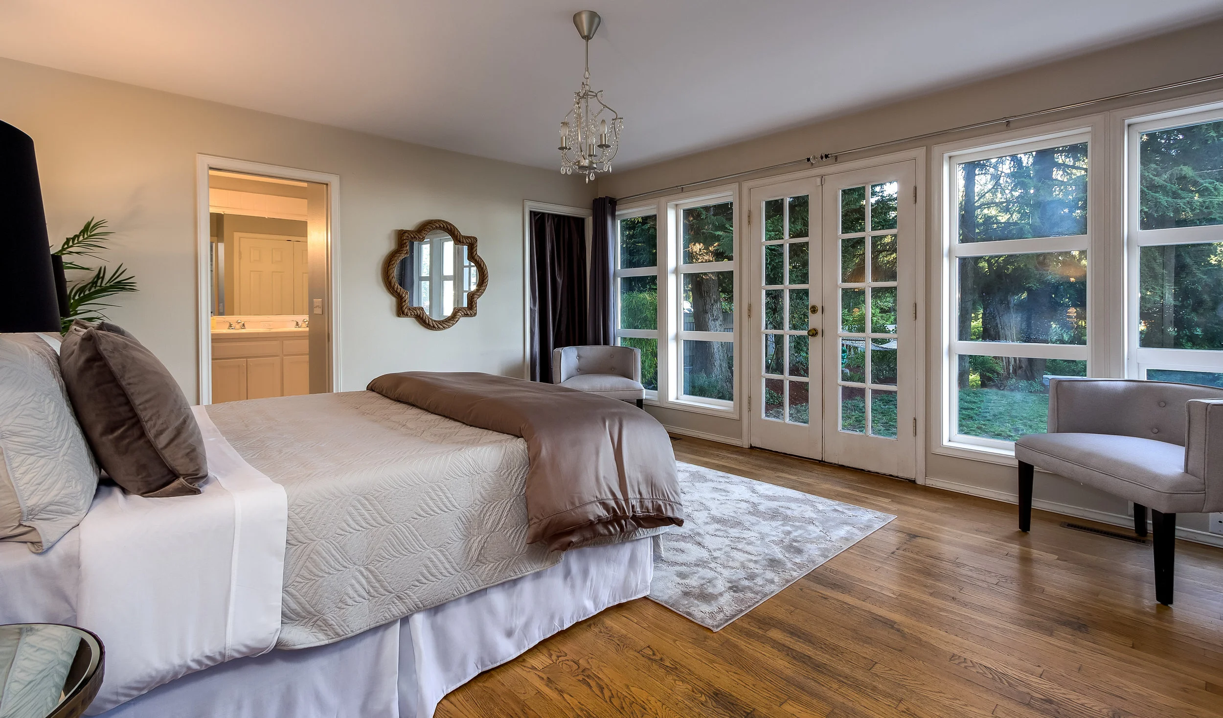 Beautiful custom-built home sits on over an acre with breathtaking views of Seattle, the shipping lanes & the Cascades from nearly every room. Great open floor plan with large kitchen leading into dining room & sunken living room, all with stunning views. The main home connects via a light-filled atrium to the attached 'guest-wing' complete with bedroom, den/office, full bath, plus family room with party kitchen and bonus loft space above. Community beach just across the street.